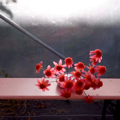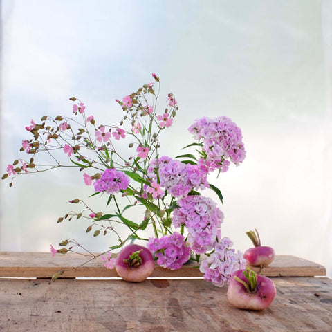Sous le soleil, la pluie et le vent, Plein Air pousse doucement des mains de Masami Charlotte Lavault. Après des études de design industriel à l’Université des Arts Appliqués de Vienne et à Central Saint Martins à Londres, Masami Charlotte se tourne vers l’agriculture en 2013. Formée au maraîchage biodynamique au Maroc et en Grande Bretagne, puis à l’utilisation des micro-organismes efficaces (EM) à Okinawa au Japon, et enfin à la floriculture biologique sur petite surface auprès de l’horticultrice américaine Erin Benzakein de Floret Flowers, elle rentre en France pour faire sortir de terre ce rêve floral un peu naïf.