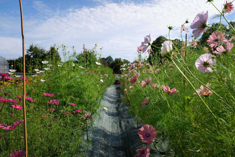 Pour les saisons 2020 et 2021, Plein Air a collaboré avec les maraîcher.e.s d’Une Ferme du Perche pour installer une micro-ferme florale de 2000m² en Basse-Normandie, à côté des légumes. Les fleurs percheronnes ont été proposées en vente directe à Une Ferme du Perche, au marché de Mortagne-au-Perche, dans les paniers AMAP envoyés en région parisienne, et au Petit Marché aux Fleurs hebdomadaire organisé à la ferme parisienne Plein Air : un lien essentiel entre agriculture urbaine et agriculture rurale. Une Ferme du Perche est une jeune ferme bio-intensive, conçue selon les principes et avec le soutien du jardinier-maraîcher québécois Jean-Martin Fortier.