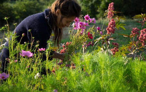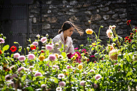 Sous le soleil, la pluie et le vent, Plein Air pousse doucement des mains de Masami Charlotte Lavault. Après des études de design industriel à l’Université des Arts Appliqués de Vienne et à Central Saint Martins à Londres, Masami Charlotte se tourne vers l’agriculture en 2013. Formée au maraîchage biodynamique au Maroc et en Grande Bretagne, puis à l’utilisation des micro-organismes efficaces (EM) à Okinawa au Japon, et enfin à la floriculture biologique sur petite surface auprès de l’horticultrice américaine Erin Benzakein de Floret Flowers, elle rentre en France pour faire sortir de terre ce rêve floral un peu naïf.
